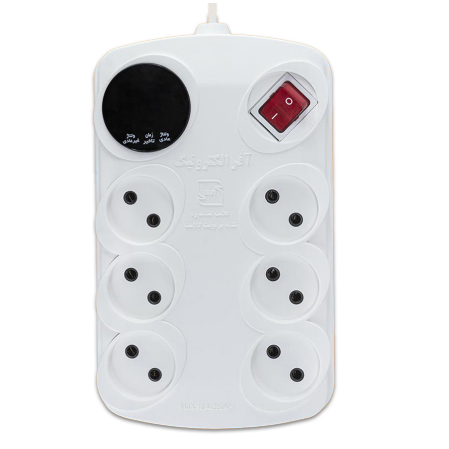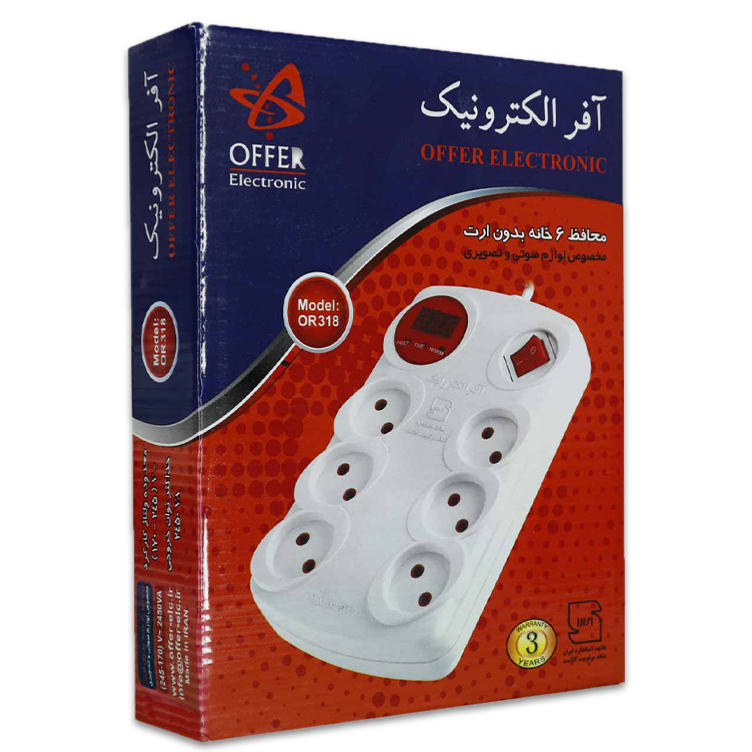 محافظ صوتی تصویری 6 خانه آفر الکترونیک یکی از تولیدات گروه صنعتی آفر الکترونیک است. آفر الکترونیک تولید کننده انواع و اقسام محافظ های صوتی و تصویری می باشد که یکی از آن ها نیز محافظ صوتی تصویری 6 خانه آفر الکترونیک می باشد. این محافظ ها همان طور که از نام شان پیداست جهت حفاظت از لوازم الکتریکی صوتی و تصویری تولید و روانه بازار شده اند که میزان ولتاژ ورودی برق را در هنگام نوسانات کنترل می کنند،
