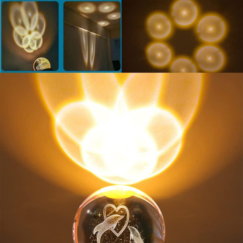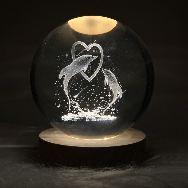 چراغ خواب مدل گوی کریستال 3D طرح دلفین و قلب کد 06